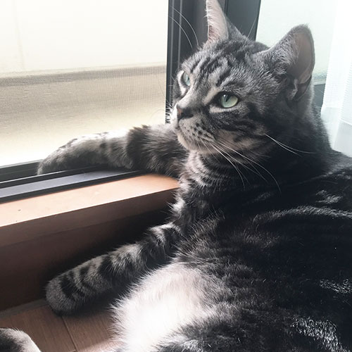 成猫になってもずっと売れ残っていて、暇そうに人間観察していたので我が家に来てもらいました。